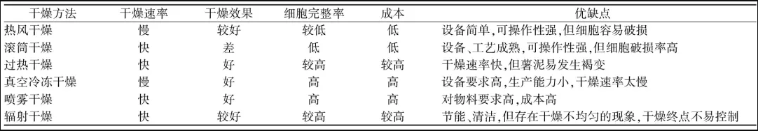干燥是馬鈴薯全粉加工的重要工序。常見的干燥方法有熱風(fēng)干燥、滾筒干燥、過熱干燥、真空冷凍干燥、噴霧干燥、微波干燥、紅外輻射干燥等。