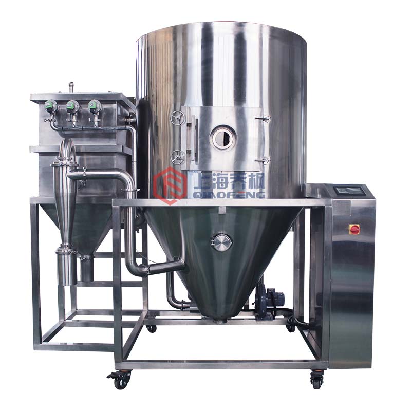 1、干燥速度快,料液在經過霧化之后其表面積大大增加,而且在瞬間就可以蒸發95%到98%的水份。完成干燥時間只需5到15秒,具有瞬時干燥特點;