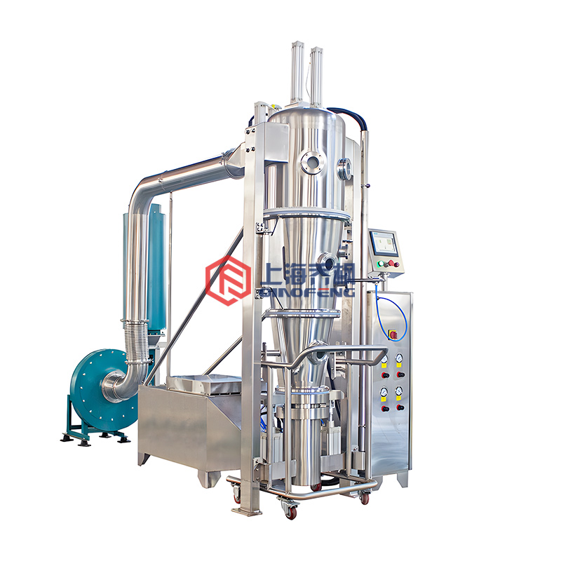 將制粒用粉末或包衣用顆粒(粉)物料投入流化床內(nèi),冷空氣從主機(jī)后部加熱室進(jìn)入,經(jīng)初效.中效過(guò)濾.加熱器加熱至進(jìn)風(fēng)所需溫度后進(jìn)入流化床,粉末(顆粒)在床內(nèi)呈流態(tài)化,制粒用粘結(jié)劑由輸液泵送入雙流體霧化器,經(jīng)霧化后噴向流化的物料。掩味、防潮、防氧化、防水、隔熱、著色、隔離包衣。