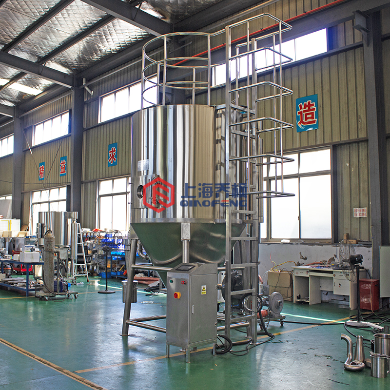 設備主要由:送料系統、加熱系統、干風裝置、霧化系統、噴霧干燥系統、產品回收系統組成。