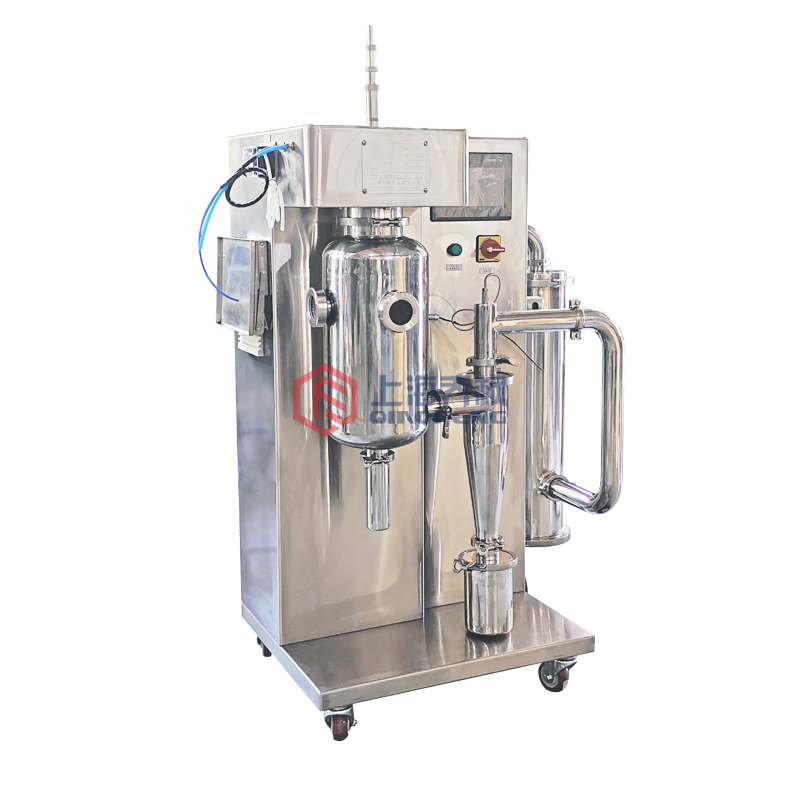 實驗室用噴霧干燥(噴霧干燥儀/噴霧干燥機)及其主要適用于高校、研究所和食品醫藥化工企業實驗室生產微量顆粒粉末,對所有溶液如乳濁液、懸浮液具有廣譜適用性, 適用于對熱敏感性物的干燥如生物制品、生物農藥、酶制劑等,因所噴出的物料只是在噴成霧狀大小顆粒時才受到高溫,故只是瞬間受熱,能保持這些活性材料在干燥后仍維持其活性成份不受破壞。