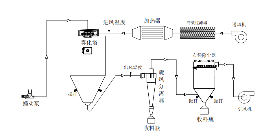 干燥后的粉末狀產(chǎn)品通過收料器收集,可以根據(jù)需要進一步處理。