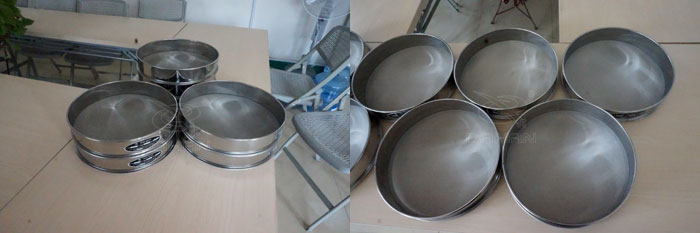 標準篩測定物料粒度組成所使用的一套標準篩具。是篩析的主要工 具。它是由一套篩孔尺寸大小有一定比例的、篩孔寬度和篩絲直徑都按標準制造的直徑為200mm的若干層圓形篩子所組成。有蓋和底,可手工操作也安裝在機上進行篩分。只要知道篩比和基篩這兩個參數,就可以算出該系列標準套篩的各個篩子的篩孔尺寸。根據篩比和基篩篩孔尺寸的不同,分成各種標準篩制。